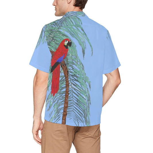 • Miniaday Designs Red Parrot With Palms Blue Hawaiian Shirt with Chest Pocket - Miniaday Designs, LLC.