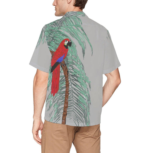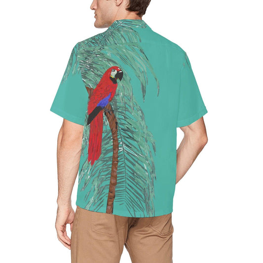 • Miniaday Designs Red Parrot on Green Hawaiian Shirt with Chest Pocket - Miniaday Designs, LLC.