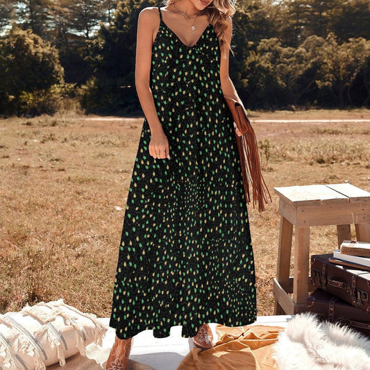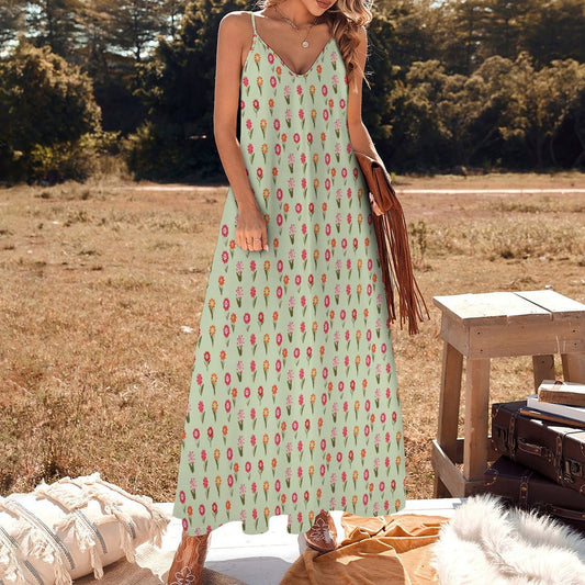 • Miniaday Designs Retro Bloom Colleciton Spaghetti Strap Ankle-Length Dress Long Dress Green - Miniaday Designs, LLC.