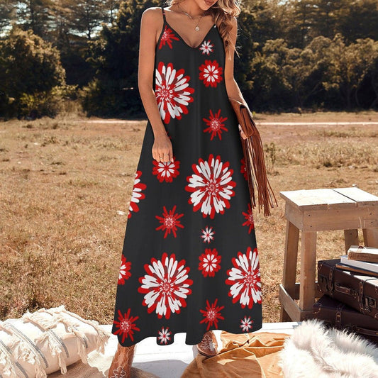 Miniaday Designs Crimson Petal Spaghetti Strap Ankle-Length Dress Long Dress Red and White