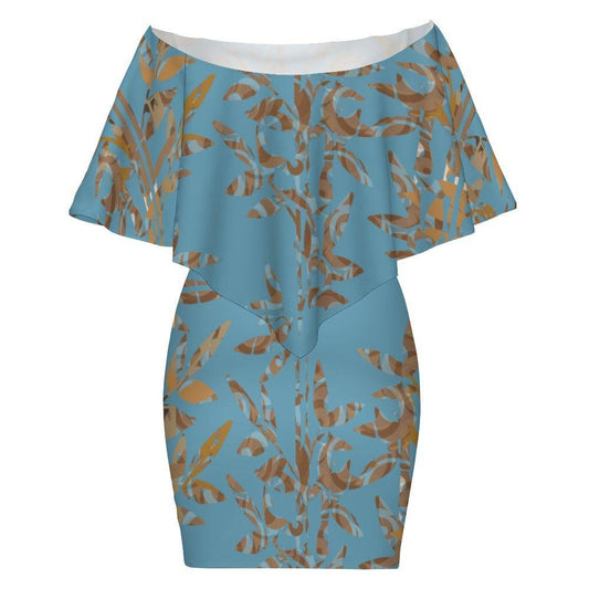 • Women's Off-shoulder Shawl Skirt (MXLD017) Blue and Brown Bamboo - Miniaday Designs, LLC.
