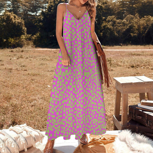 Miniaday Designs Retro Bloom Colleciton Spaghetti Strap Ankle-Length Dress Long Dress Pink
