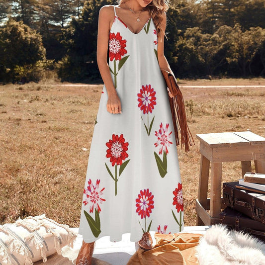 • Miniaday Designs Crimson Petal Spaghetti Strap Ankle-Length Dress Long Dress Red and White - Miniaday Designs, LLC.