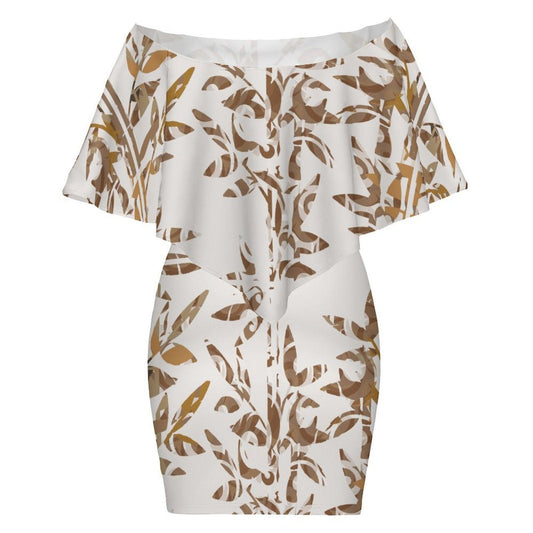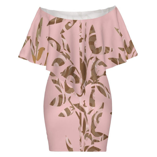 • Women's Off Shoulder Shawl Dress (MXLD017) Pink and Brown Bamboo - Miniaday Designs, LLC.