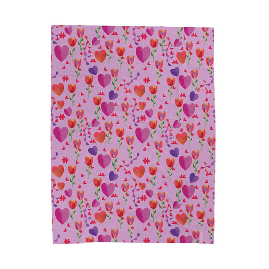 • Hearts and Tulips Bright Velveteen Plush Blanket