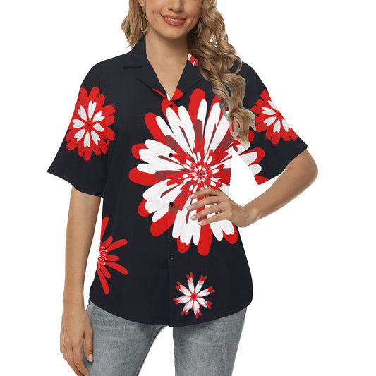 • Miniaday Designs Big and Bold Flowers Hawaiian Shirt for Women Multiple Colors