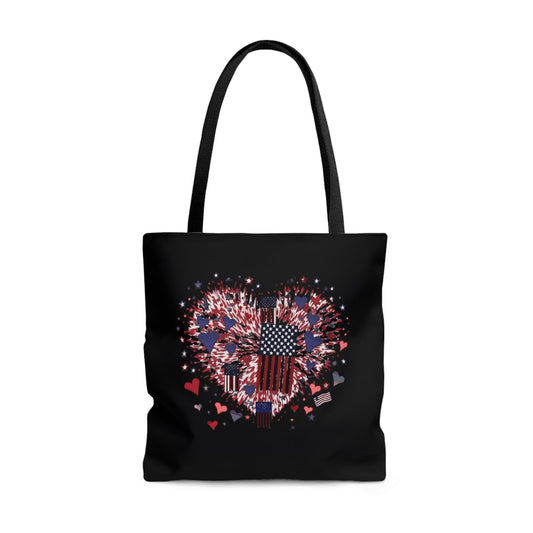 • Miniaday Designs Patriotic Hearts Black Tote Bag - Miniaday Designs, LLC.