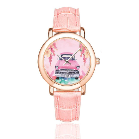 Miniaday Designs Pink Paradise Reloj con correa de cuero chapado en oro rosa para mujer