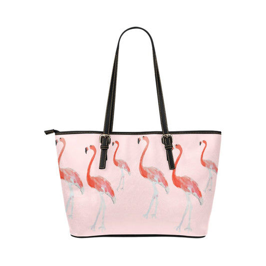 Miniaday Designs Flamingo Shopping Trip Bolso de mano de cuero PU/Pequeño (Modelo 1651)