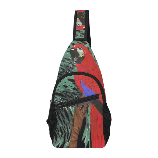 • Miniaday Designs Red Parrot and Palm Chest Bag - Miniaday Designs, LLC.