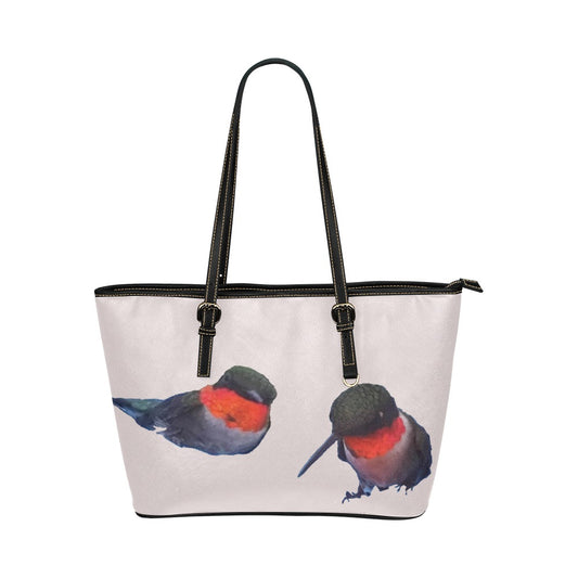 Bolso tote pequeño con flamenco y plumas fucsia sobre melocotón @ Bolso tote de cuero 3x/Pequeño (Modelo 1651)